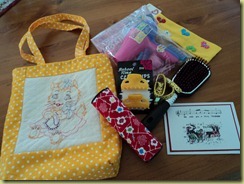 ReplyDeleteMary, I love your goodies from my friend Micki and the little bag and candle mat are so sweet. You've been V. lucky this week to get so many delicious things.