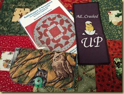 Beautiful gifts given and received. The Christmas quilt is so cute and aren't those table runners the best pattern. So effective and easy.