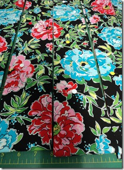 Finally after a few hours of fiddling and pinning it was time to cut my fabric into rows.
